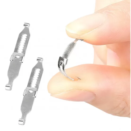 Verstellbare Korrekturklammern für eingewachsene Zehennägel aus Edelstahl zur effektiven Behandlung von eingewachsenen Zehennägeln. Einfach zu bedienen und für Komfort einstellbar, fördert gesundes Zehennagelwachstum und Schmerzlinderung. Eine praktische Lösung für die Pediküre zu Hause.